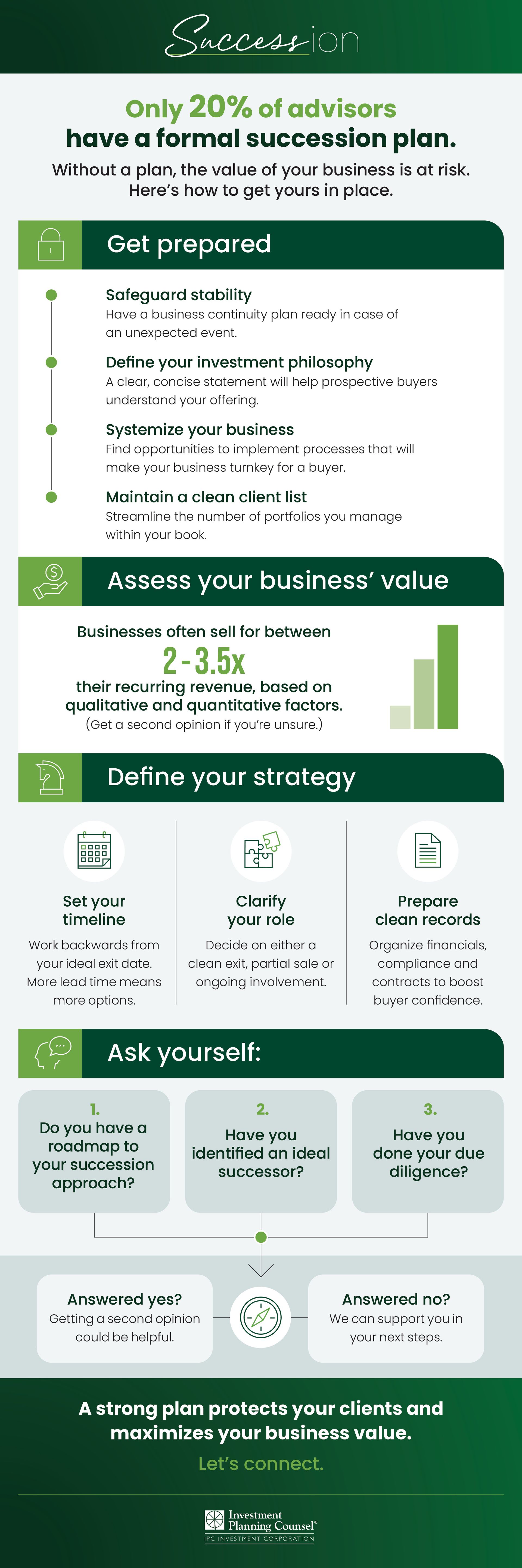 Most advisors wait too long to plan their succession, putting both continuity and business value at risk. Our quick-read checklist outlines the key steps to assess your readiness and build a transition strategy that protects your clients and your future.